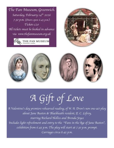 Having marked the 250th Anniversay of England’s beloved Jane Austen in 2025, alongside it’s continuing exhibition ‘Fans in the Age of Jane Austen’, The Fan Museum presents the premiere rehearsed reading of W.A. Drew’s new one act play about Jane Austen & Blackheath resident, E. C. Lefroy.