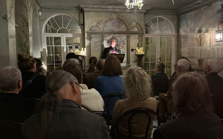 The Orangery was full for the performance by Richard Hollis of his readings from Charles Dickens on the evening of December 19th. It was a highly skilful intermingling of the some of the principal events of Dickens’ life with readings from some of his novels.